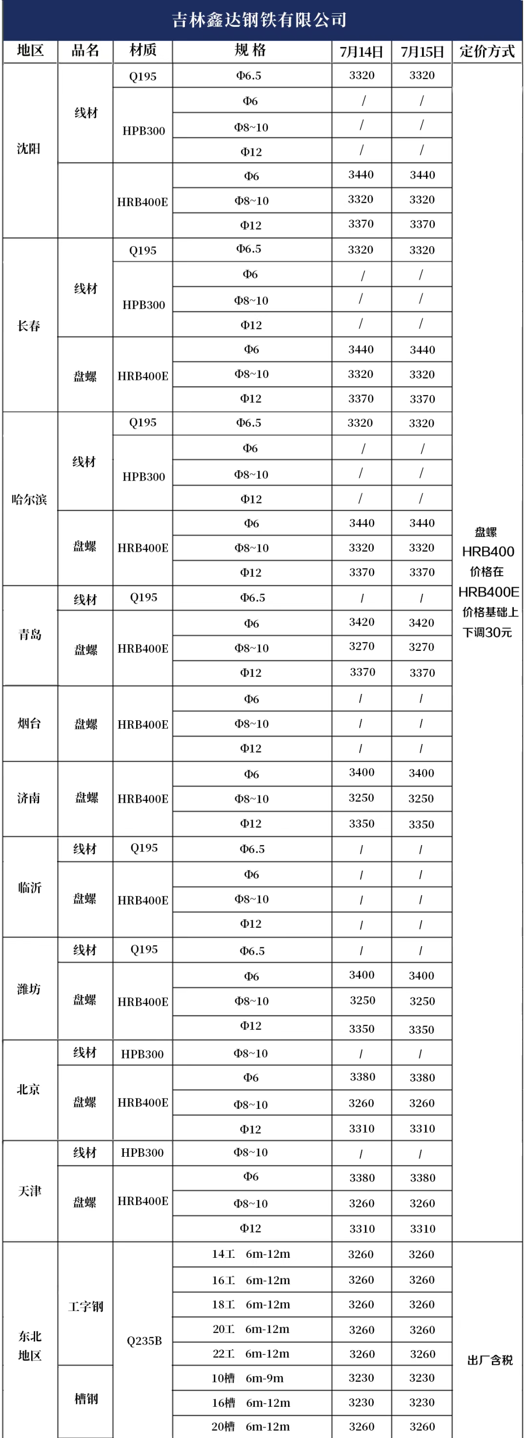 7月15日产品报价